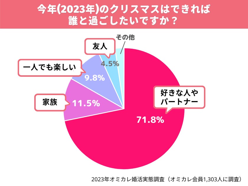2023年のクリスマス。71.8%が「好きな人やパートナーと過ごしたい」と思っている。