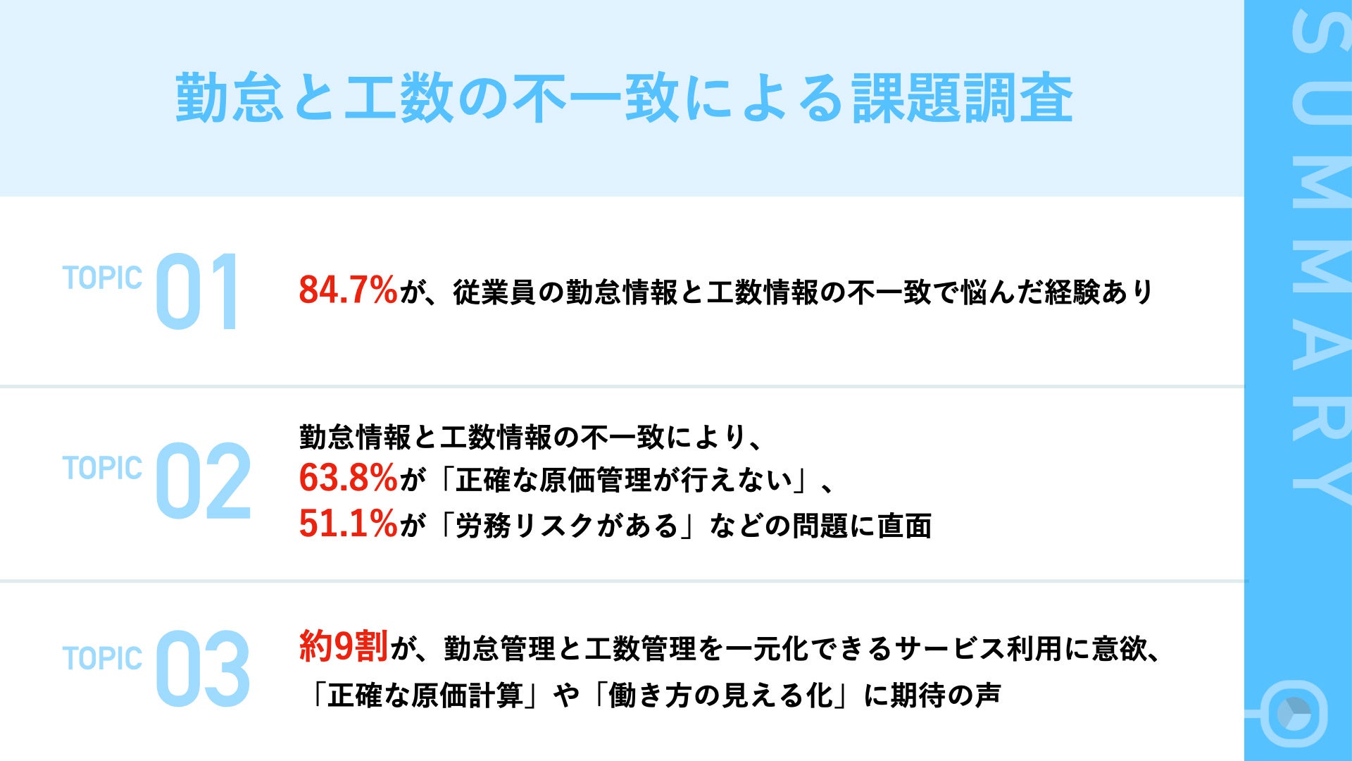 ■84.7%が、従業員の勤怠情報と工数情報の不一致で悩んだ経験あり