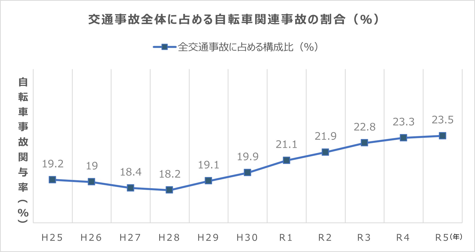 近年、交通事故全体に占める自転車の交通事故関与率は増加傾向※にあり、自転車による交通事故削減のための法整備が進んでいます。自転車の交通事故が社会課題化する中で、「自転車の交通マナー」について注目が集まり、SNS上では「車VS自転車どっちが悪い論争」が白熱しています。このような実態を踏まえて、車と自転車のリアルな不満と運転事情を明らかにすべく、アンケート調査を行いました。本調査により車と自転車の双方の不満と事情を明らかにし、相互理解を促すことを目的としています。
