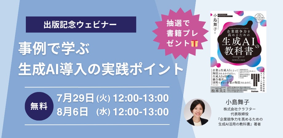本ウェビナーにお申し込みいただいた方の中から、抽選で20名様に、新刊書籍『企業競争力を高めるための生成AI活用の教科書』をプレゼントいたします。