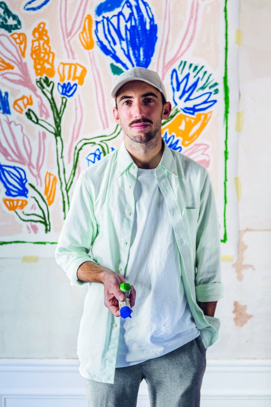 今回、2020年以来メゾンと親交を結ぶフランス人アーティスト、アレクサンドル・ベンジャミン・ナヴェが、〈フリヴォル コレクション〉のためのカラフルで詩情あふれる世界を創造しました。イラストレーターである彼は、春の幕開けにふさわしい緑豊かな舞台をデザインしています。そこでは、バルコニーや花瓶を思わせる立体的な装飾要素の傍らに、花々がすっきりと立ち並び、ウィンドウやブティックを鮮やかに彩ります。このアーティストならではのダイナミックな筆致が目を楽しませてくれるとともに、色鮮やかな構図の中で、生き生きとした〈フリヴォル〉のモチーフが花開きます。
