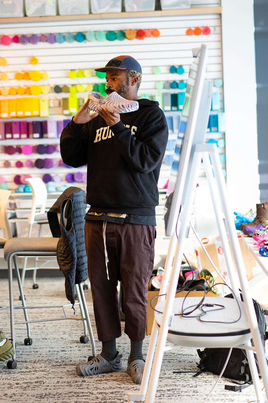Bembury氏は、お客様を第一に考えた視点で開発に取り組む著名なデザイナーとして、クロックスと同じブランド価値を共有し、革新性と実用性を融合させ、新しいファン層に共感されるモダンなデザインを生み出してしています。クロックスとの関係は、多くの有名なコラボレーションと同様に、インターネット上の会話が現実の物語となり、始まったものです。 クロックスがインスタグラムのダイレクトメッセージを通してBembury氏に靴を贈りたいと連絡したところ、Bembury氏からの返信は、コラボレーションの可能性についての提案でした。 そして、クラシック・クロッグのデザインを進化させるという彼のアイデアから全ては始まりました。