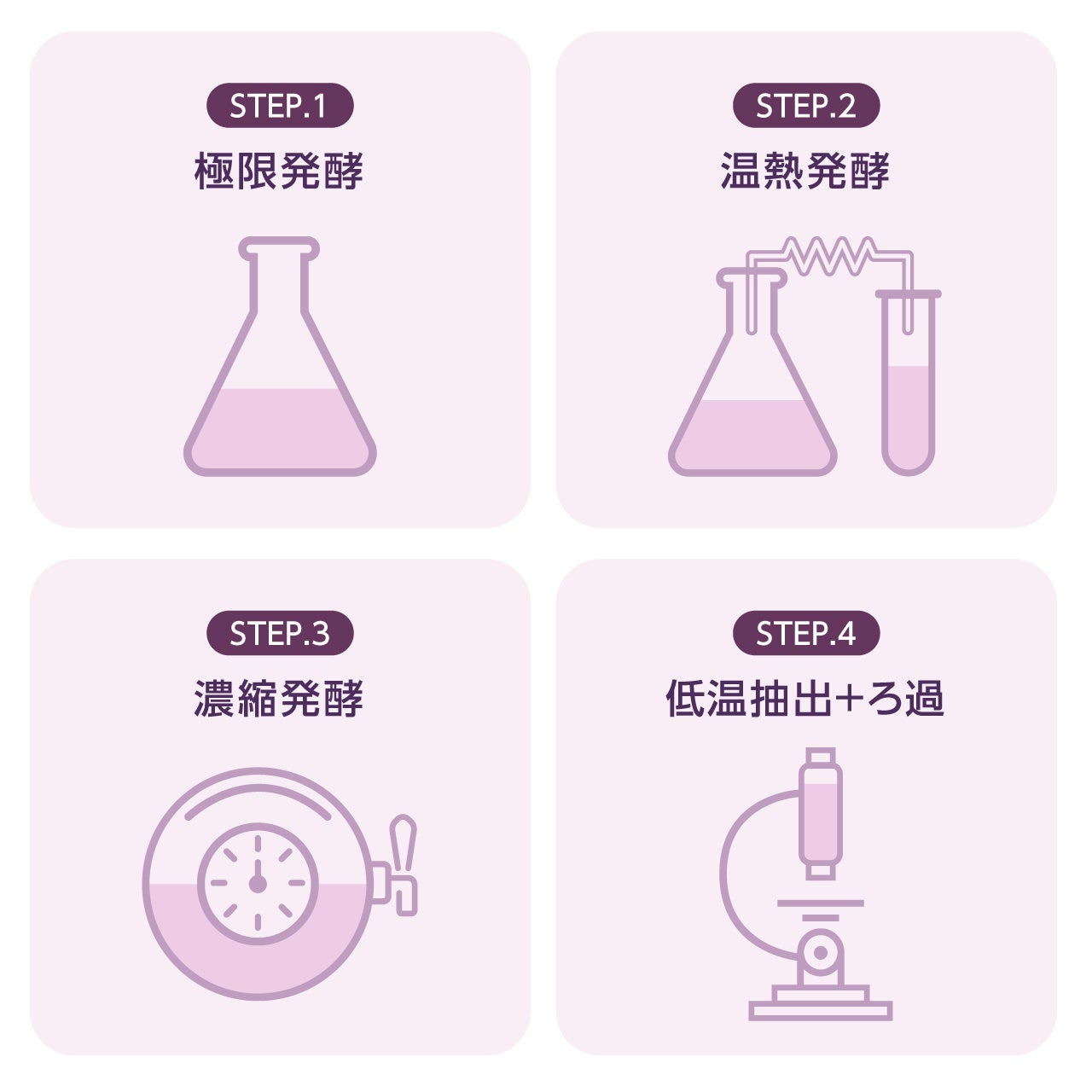 極限発酵+温熱発酵+濃縮発酵の3回にわたる特殊発酵でより効率よく肌内部へ浸透*⁴させます。