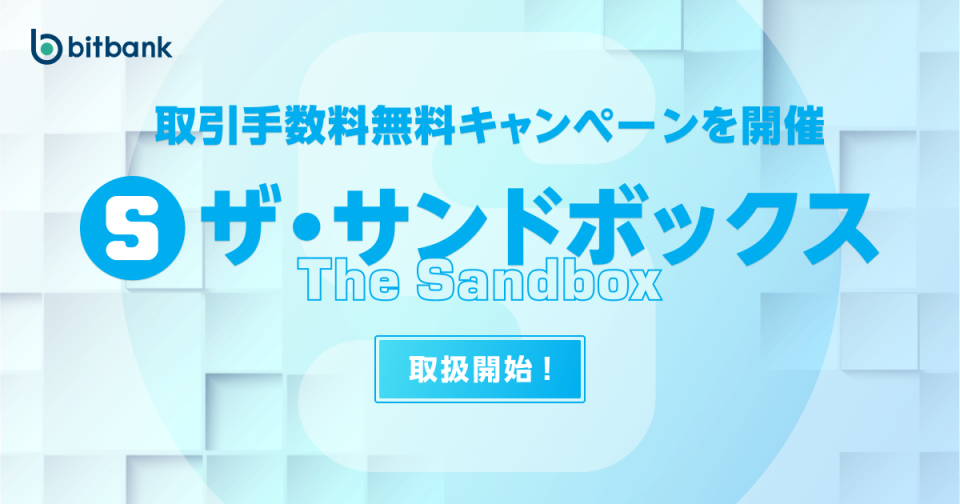 ビットバンク株式会社(本社:東京都品川区、代表取締役社長:廣末紀之、以下当社)は、本日より新たにザ・サンドボックス(SAND)の取扱いを開始いたしました。