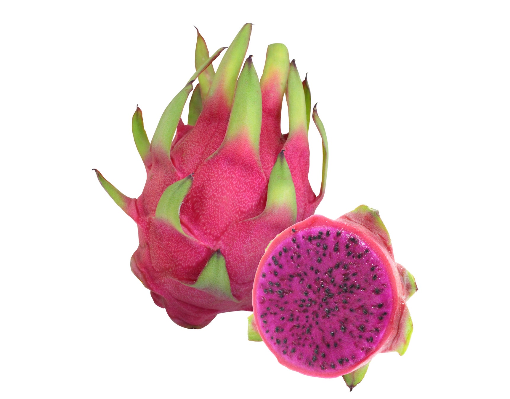 サボテンの仲間の果実で、果皮に竜の鱗の様な突起をもつことからドラゴンフルーツとも呼ばれます。鉄やマグネシウムなどのミネラル分が豊富で、女性に嬉しい葉酸や食物繊維を含むのが特徴です。果肉は優しい甘味で、クセがない風味とほのかなメロンの香りがします。
