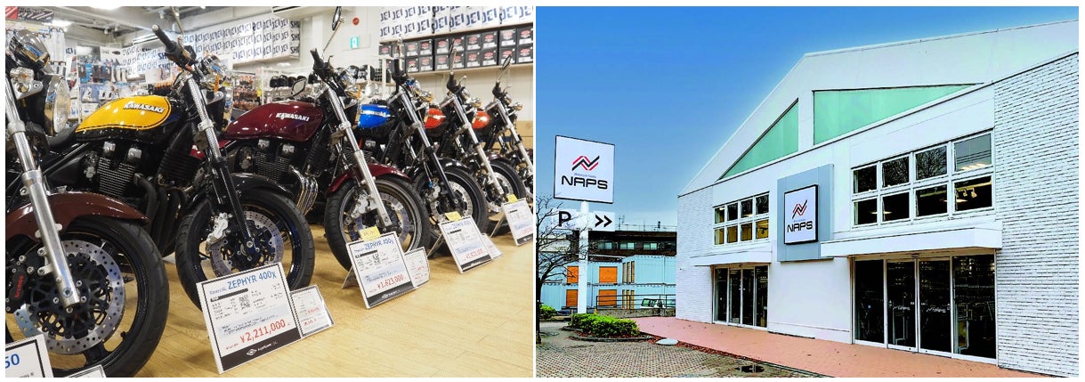 また、『ナップス モトテラス 東名川崎』では、これまでの内燃機関のバイクをこよなく愛するライダーのために、販売好調な『Naps Sports - Vintage』車両の全国最大の拠点として、豊富な車種が取り揃えられており、眺めているだけでもワクワクする90年代の名車の展示・販売も行っております。