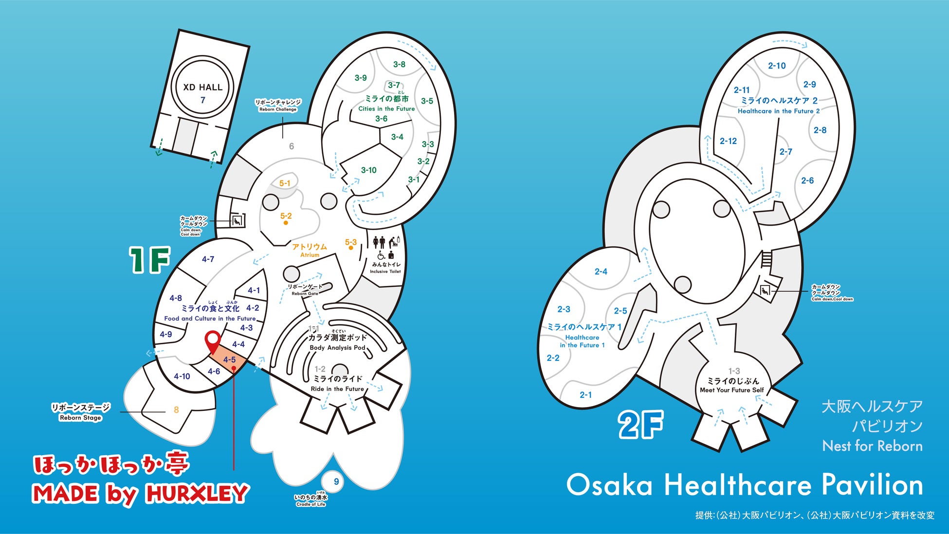 我々『ほっかほっか亭 MADE by HURXLEY』は、フードエリアである「ミライの食と文化」ゾーンに位置していて、大阪ヘルスケアパビリオンの来館予約不要でご来場いただくことができます。