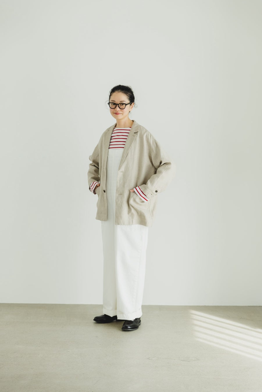 「フレンチリネンのテーラードジャケット」は、フレンチリネン100%の素材を使用し、カーディガンやシャツのように気軽に羽織れる軽やかさと、ジャケットらしい程よいきちんと感を両立させました。ゆったりとしたボックスシルエットに加え、ドロップショルダーや広めの袖幅など、リラックス感と上品さを両立したデザインが特長です。