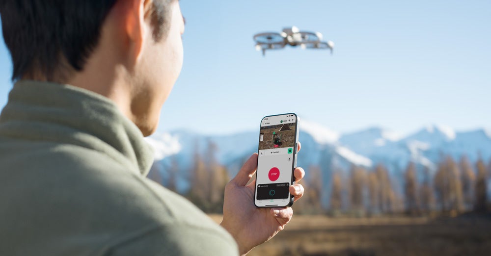 「Hey Fly」 - この言葉でDJI Flyアプリを起動すると音声制御が有効となり、音声による飛行指示でDJI Flipを操作できます。スマートフォンに接続すると、音声を捉えながら、プロペラノイズを自動的にフィルタリングし、ノイズをスマートに低減します。この機能により、自分一人でもコンテンツの音声を収録できます。