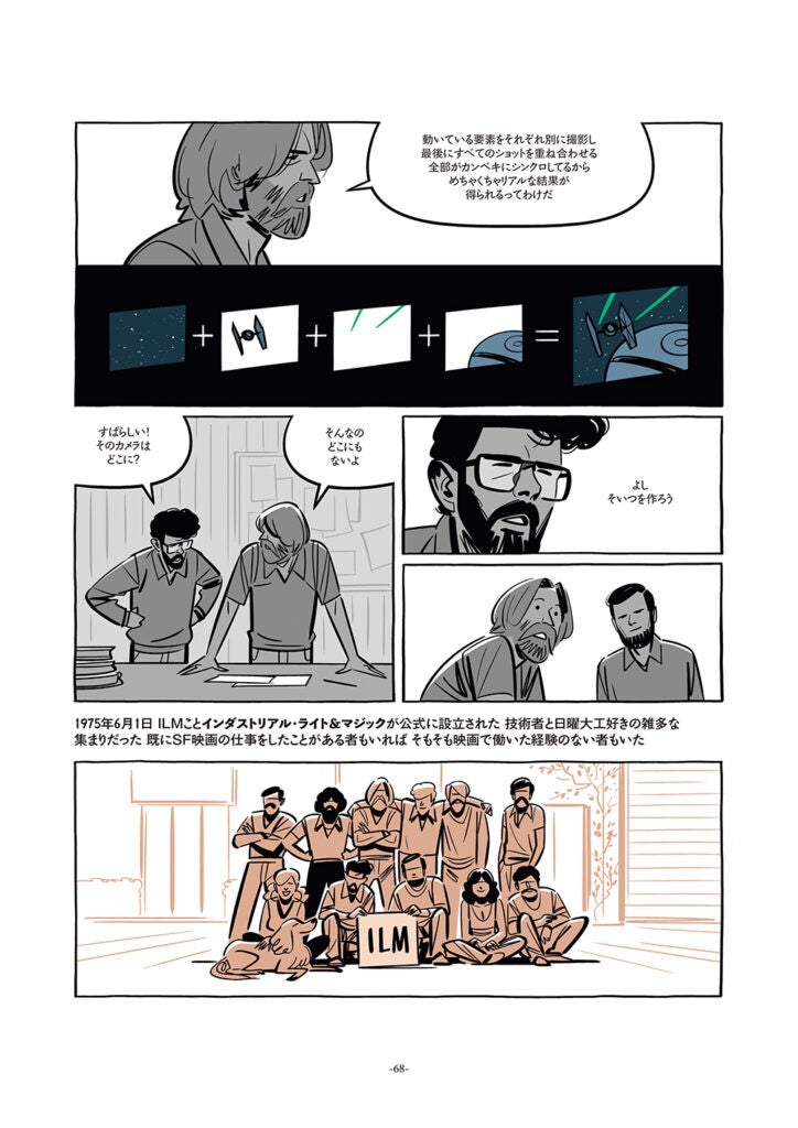 さらに、コンピューターによるモーション・コントロールカメラ・システムで有名なジョン・ダイクストラ、ストリートボード作成から模型制作までと何でもこなしたジョー・ジョンストン、ライトセーバーの音などを発明したベン・バートンらが同じ時代・世界に存在していたこと自体が凄いと、彼らの仕事ぶりをこれでもかと詳細に紹介。その一方、ルーカスがロンドンでの撮影に悪戦苦闘していた3カ月間、たった2カットしか作っていなかった当時のILMの仲間たちのダメっぷり──「ルーカスが帰ってくるので慌てて作った(笑)」(山崎)──をご愛敬と語りだす。そして似たような経験があると山崎監督自身が吐露する場面も。だがこの2カットは初めてできた「SW」のVFXシーンとして語り草。その後、ILMは撮影前に仮のCG映像を作成してイメージを共有するプリビズ(Pre-visualization)という手法を生み出すなど、VFX先駆者として多大な貢献してきたことも併せて紹介する。「あらゆることを最初に自分のお金を使ってやって、それが業界の標準になっていくという、超絶先駆者」と山崎監督は力説。