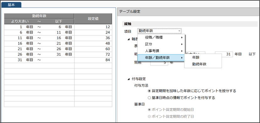 1.社員情報を利用した最大三次元のポイントテーブル設計で、あらゆる企業の退職金規程に確実に対応