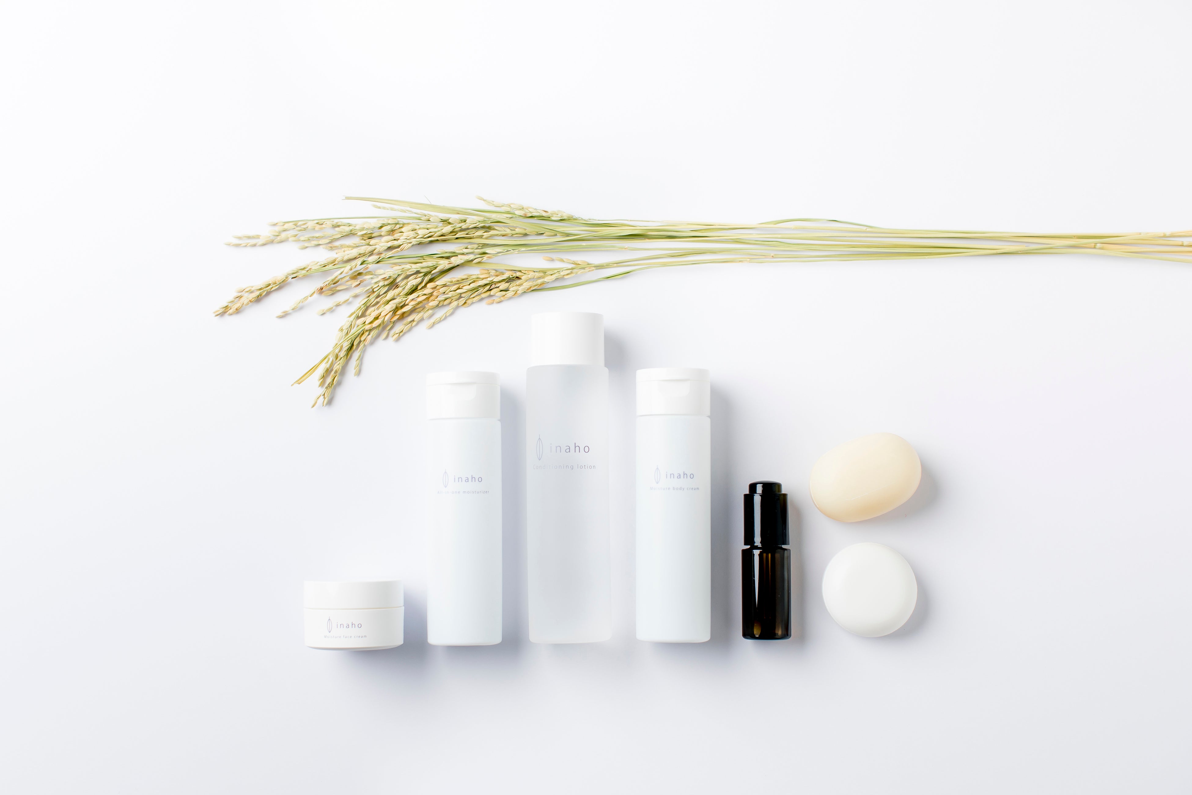 米ぬか由来の成分を贅沢に配合した肌に優しいスキンケア「inaho(イナホ)」。米ぬか成分の中でも特に肌に良い成分を贅沢に使ったスキンケア「inaho」シリーズは、4つの無添加(合成香料・鉱物油・合成着色料・アルコール不使用)にこだわり、発売当初より肌質などに関わらず幅広い方々に好評いただいております。