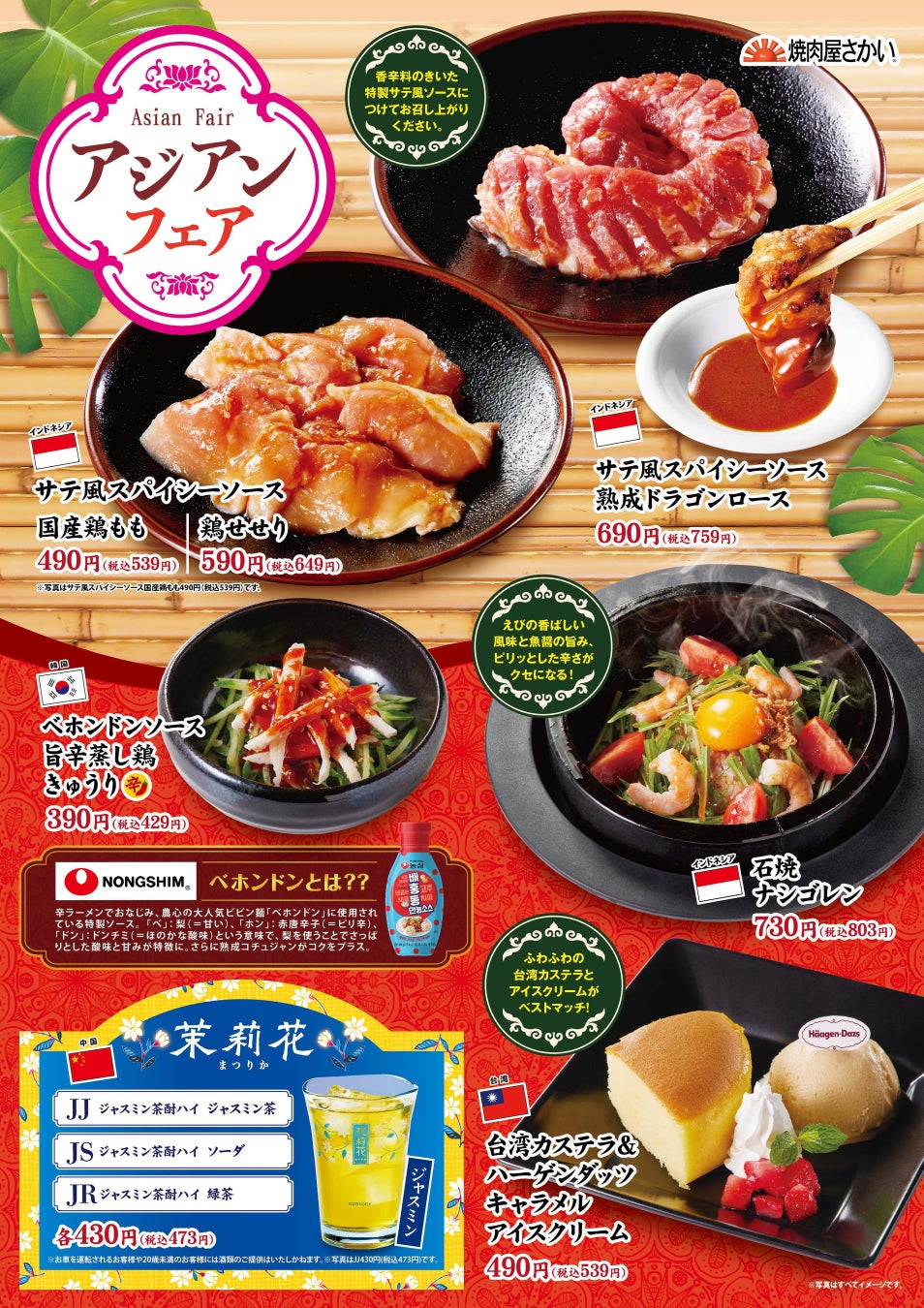 5 / 15 (水)~「焼肉屋さかい」にて アジアンフェア開催! ~「インドネシア・韓国・台湾・中国」アジア4ヵ国の風味をお楽しみください ~