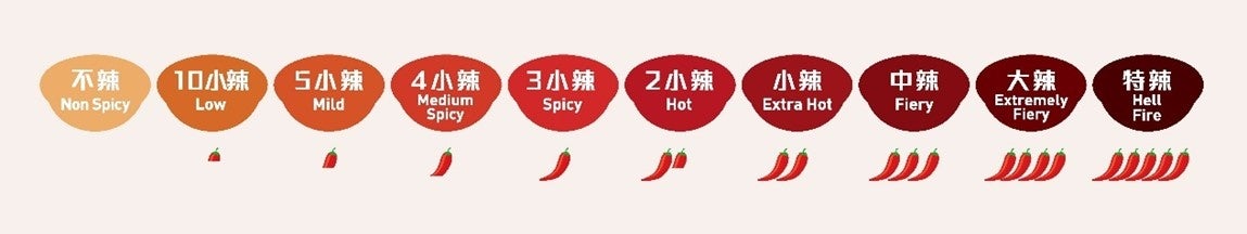 辛さは10段階からお好みの辛さを選べます。初心者におススメなのは一番辛さを抑えた10小辣で、数字が小さくなるごとに辛さが増します。香港では10小辣と5小辣が人気です。激辛好きには麻辣スープの小辣がおすすめです。また、辛さが苦手な方には「清湯(クリアスープ)」「番茄湯(トマト)」がおすすめです。全く辛くない不辣も選べます。(クリアスープは不辣のみのご注文となります)