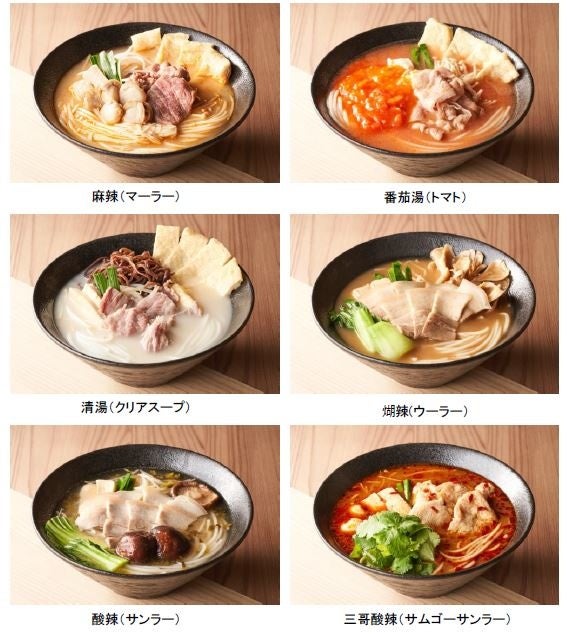 譚仔三哥(タムジャイ サムゴー)は、香港No.1※1の人気を誇る米線スープヌードルレストランです。革新と独創を積み重ね、様々なスパイスが調合されたオリジナルのスープは、香り・旨味・そして辛味の複雑さを豊かに感じることができます。また、コクと旨味に鮮やかな花椒(ホアジャオ)※2のしびれが加わった「麻辣(マーラー)」や、爽やかさと甘味が入り混じる番茄湯(トマト)、焦がしスパイスがクセになる「煳辣(ウーラー)」など、6種類の異なる味わいのスープに加え、10通りの辛さと25種類のトッピングを自分好みに組み合わせて楽しめます。