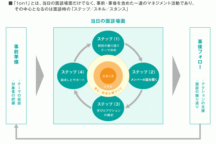 普段のコミュニケーションと1on1で求められるコミュニケーションの違いを理解し、1on1を実施する目的・意味・効能を再認識します。