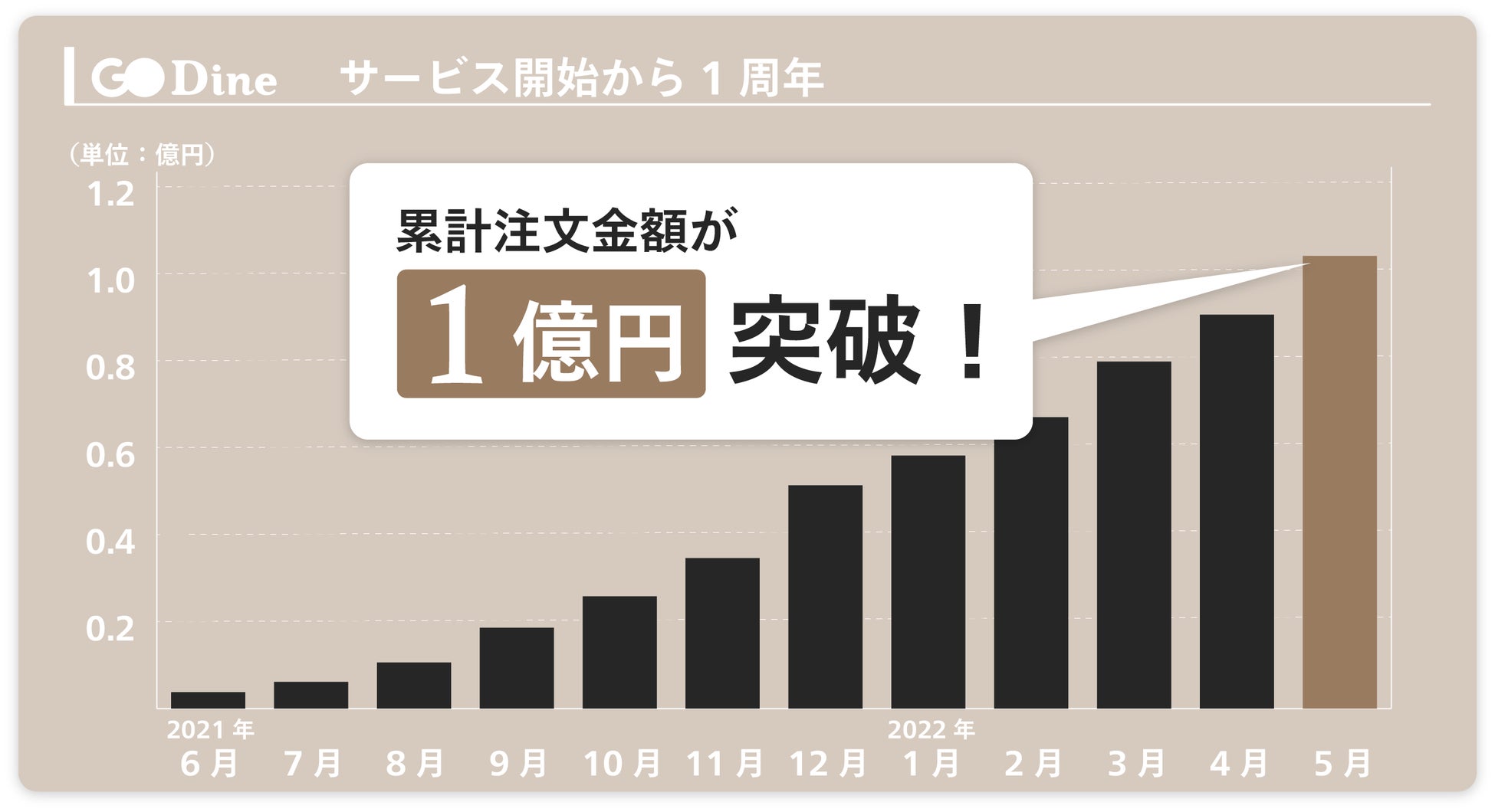 |サービス開始から1年経った『GO Dine』、累計注文金額1億円を突破!