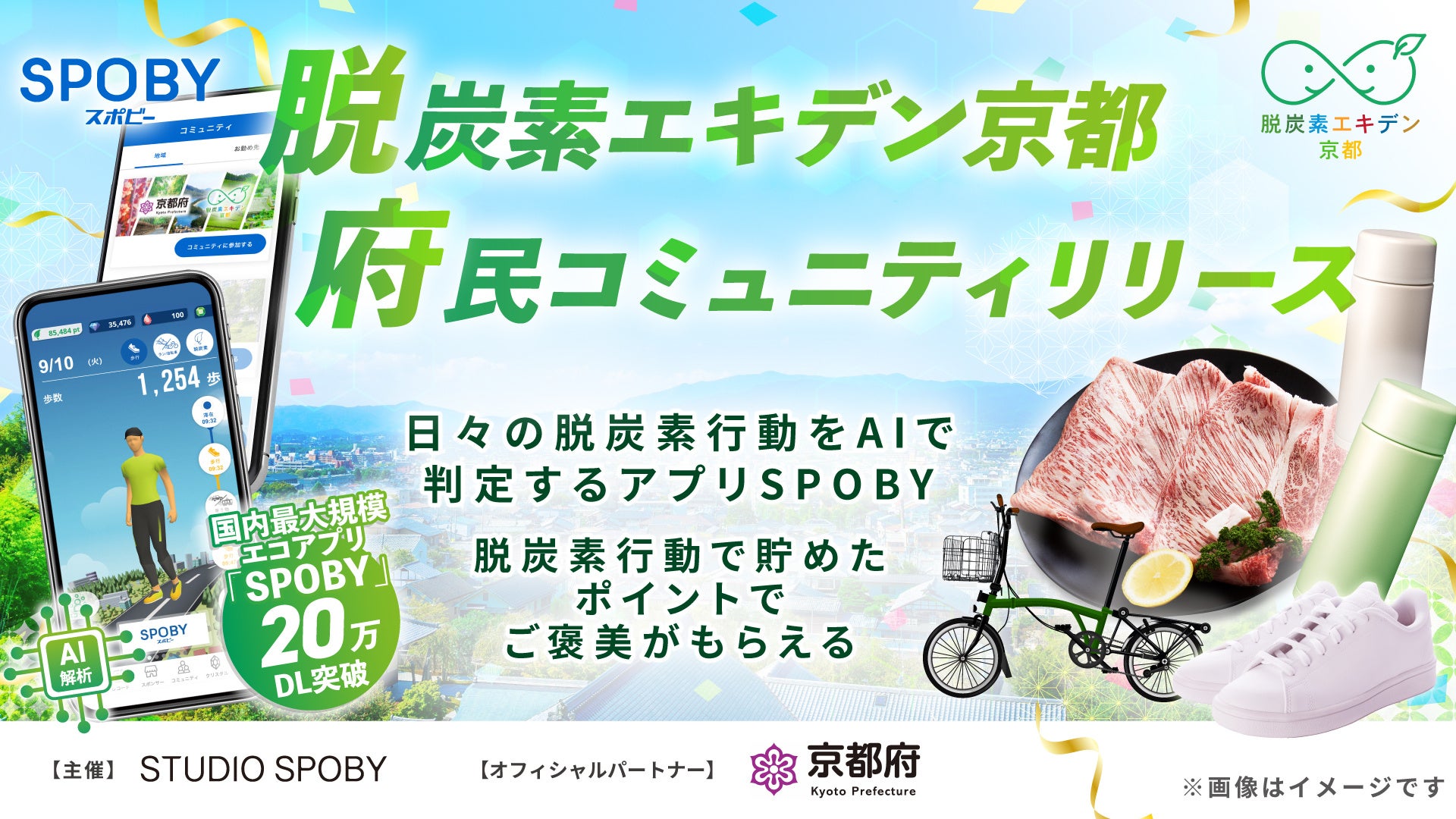 株式会社スタジオスポビー(東京都中央区、代表取締役:夏目恭行、以下「当社」)は、個人の脱炭素行動変容をAIで定量計測し可視化するアプリ「SPOBY」を提供しています。この度、当社は京都府内の事業者の従業員や府民の脱炭素型ライフスタイルの意識醸成と行動変容を促進することを目指すプロジェクト「脱炭素エキデン京都」(以下「本プロジェクト」)を2025年5月20日(火)より開始します。