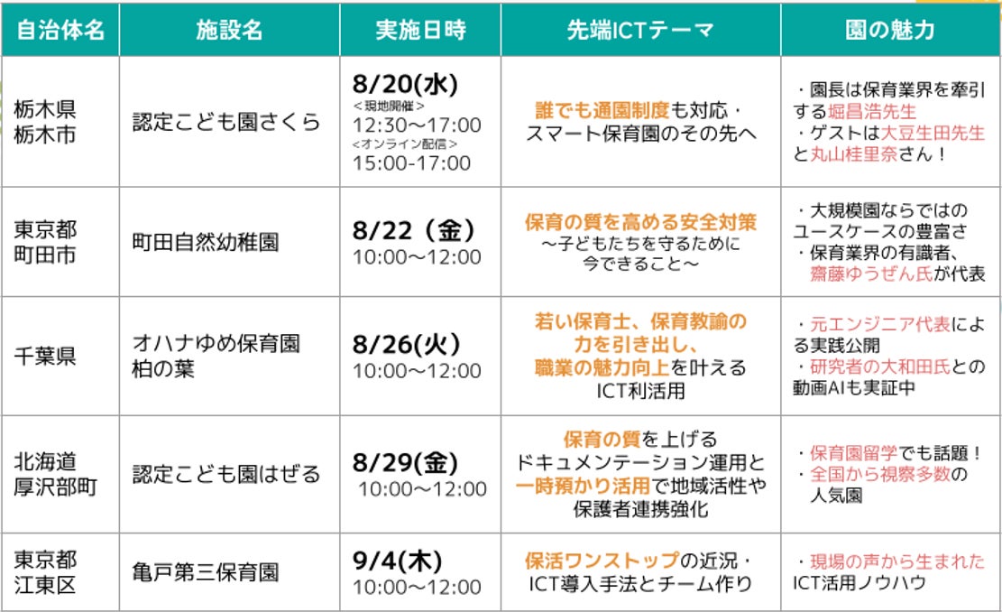 ※上記スケジュールは一部変更になる可能性があります。詳しくは、上記保育ICTラボ特設ホームページにてご確認ください。