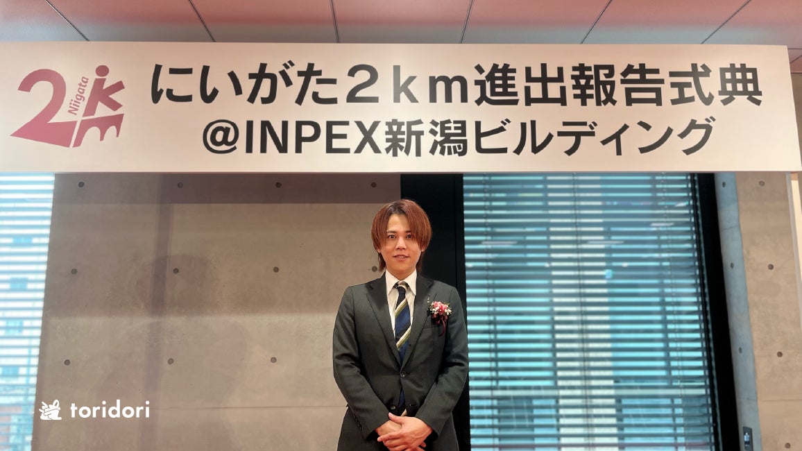 インフルエンサーマーケティングプラットフォーム『toridori marketing/toridori base(トリドリマーケティング/トリドリベース)』を中心としたインフルエンサーマーケティング事業を手がける株式会社トリドリ(本社:東京都渋谷区、代表取締役社長CEO:中山貴之、証券コード9337、以下toridori)は、2025年3月27日(木)に新潟市主催の「にいがた2km進出報告式典@INPEX新潟ビルディング」に列席し、新潟進出についての発表を行ったことをお知らせいたします。