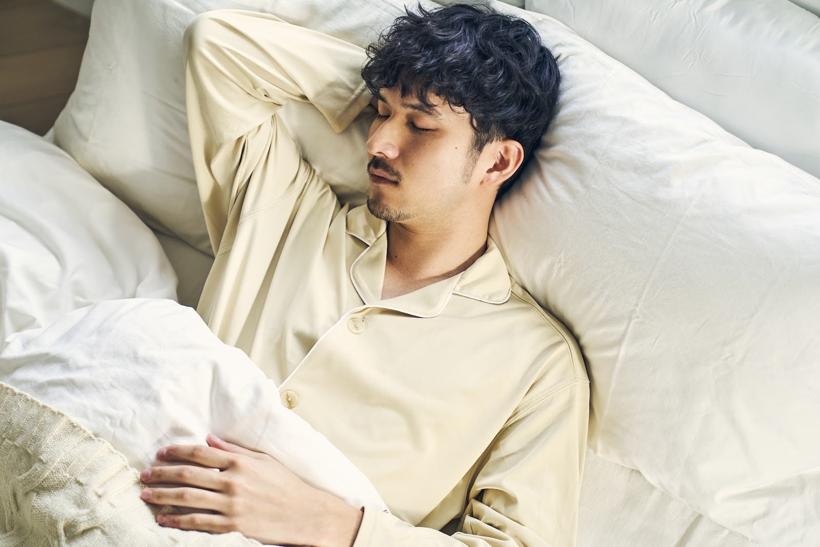 特殊機能繊維『SELFLAME®︎』による血行促進・疲労軽減・ストレス軽減効果と、睡眠時の肌触りにこだわったしっとり軽い優しい着心地でリラックスして睡眠に誘います。
