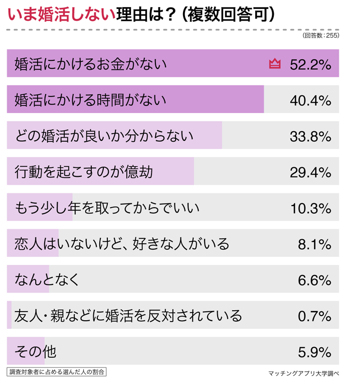 - いつか婚活したいが今は婚活しない理由は「婚活にかけるお金がない」が最多