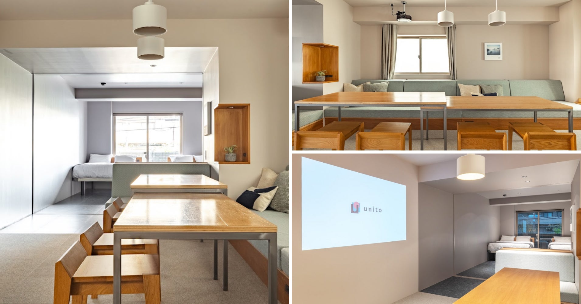 この度Unitoは、2024年7月1日に先行開業していた48室に、最大8名のグループで滞在できる60㎡の開放的なレジデンシャルルーム、最大4名で広々と滞在できる20㎡のスーペリアツインをくわえた合計50室を運営する運びとなりました。さらに1階ロビーの一部をラウンジにリノベーションを施し、待ち合わせや観光、仕事の合間などに利用するワーク・ダイニングスペースとして最適な空間をご用意しました。