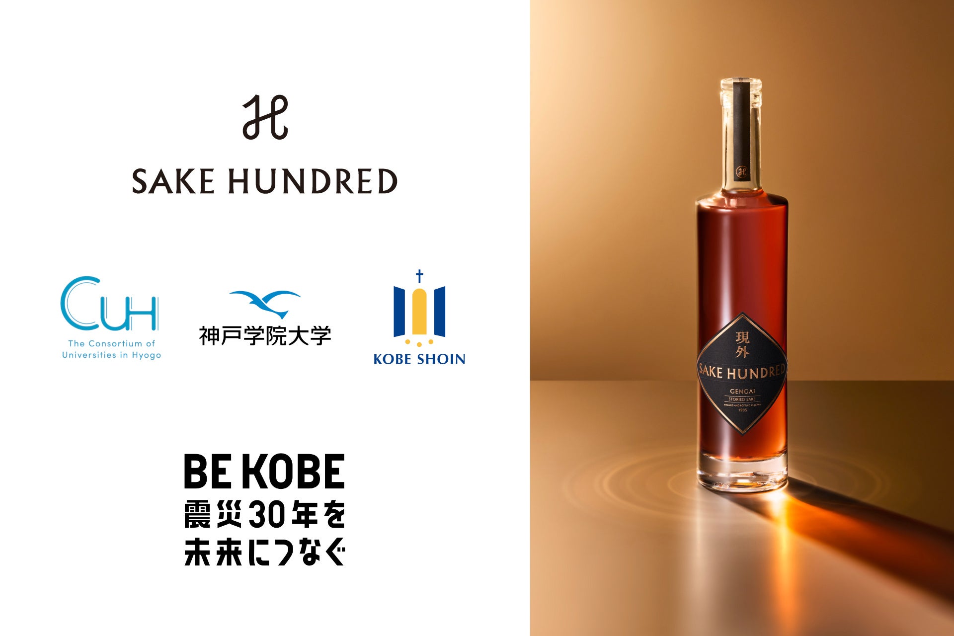 世界中の人々の『心を満たし、人生を彩る』ことをブランドパーパスに掲げる日本酒ブランド「SAKE HUNDRED(サケハンドレッド)」は、阪神・淡路大震災にゆかりの深い『現外(げんがい)』という30年熟成 ヴィンテージ日本酒をラインナップしていることを受け、震災30年の節目となる今年、この30年を未来に繋いでいくための企画を年間を通して実施しています。その活動の一貫として、神戸学院大学、および神戸松蔭大学とともに、産官学が連携した共同研究を4月から開始します。