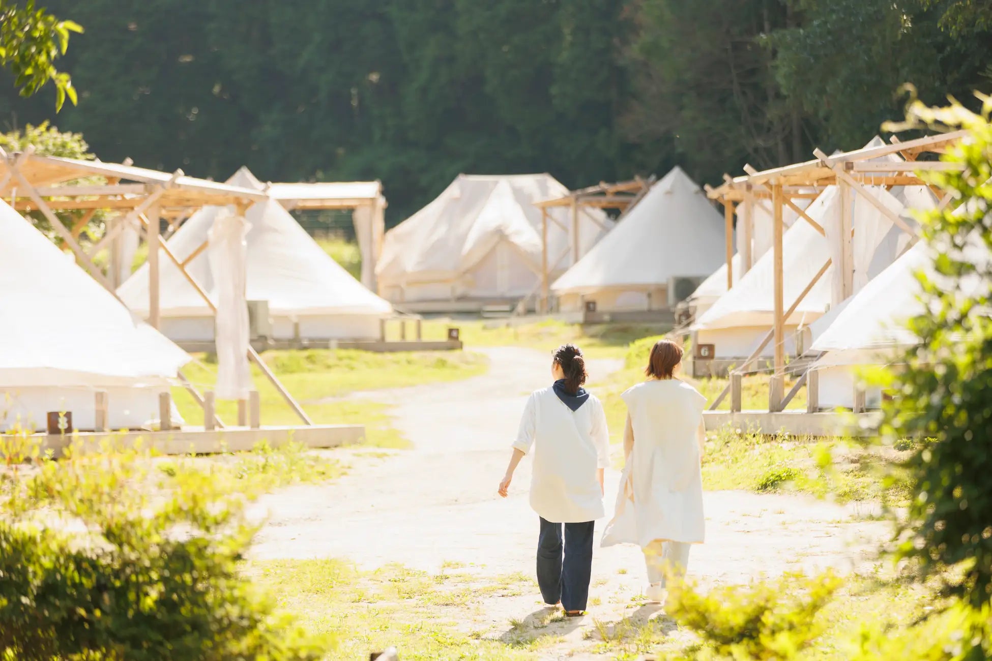 「ザランタン三瀬高原|やまびこの湯」は、佐賀と福岡の県境にある山間部、標高400mに位置する自然豊かな佐賀市三瀬村に2021年7月にオープンしたグランピング施設です。