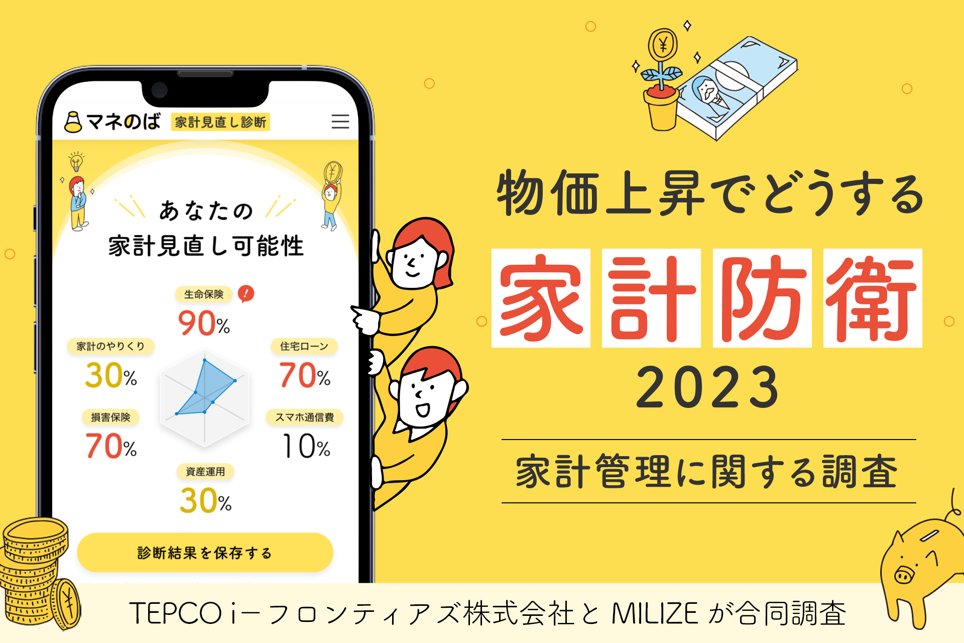 株式会社MILIZE(代表取締役社長 田中 徹)とTEPCO i-フロンティアズ株式会社(代表取締役社長 菊池 英俊)は合同で、2023年2月7日~2月8日の2日間、20~59歳の男女2,000名(一人暮らし未婚者、既婚者)に対し、「家計の管理に関する調査」を実施しました。