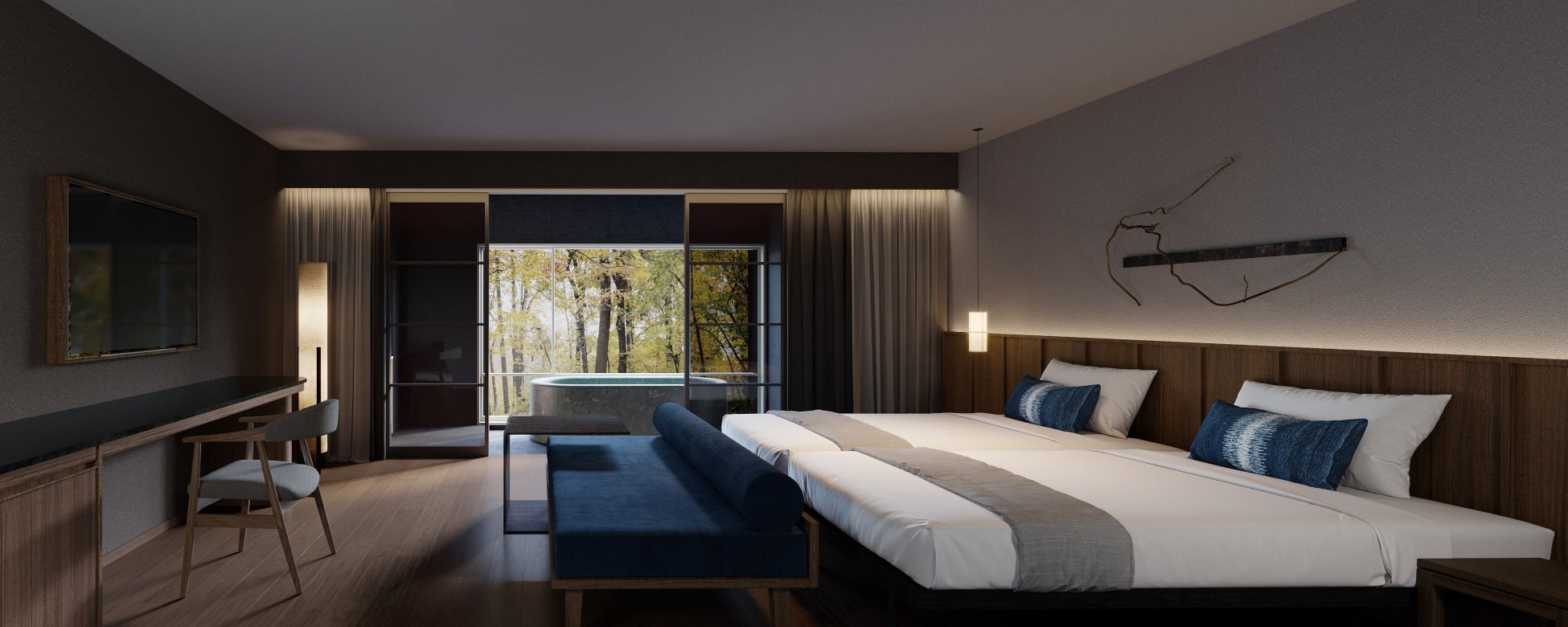 栃木県・那須温泉郷に全室半露天風呂付きの温泉宿泊施設『那須温泉 森旬の籠/ヒューイットリゾート』が2024年11月2日にオープンいたします。