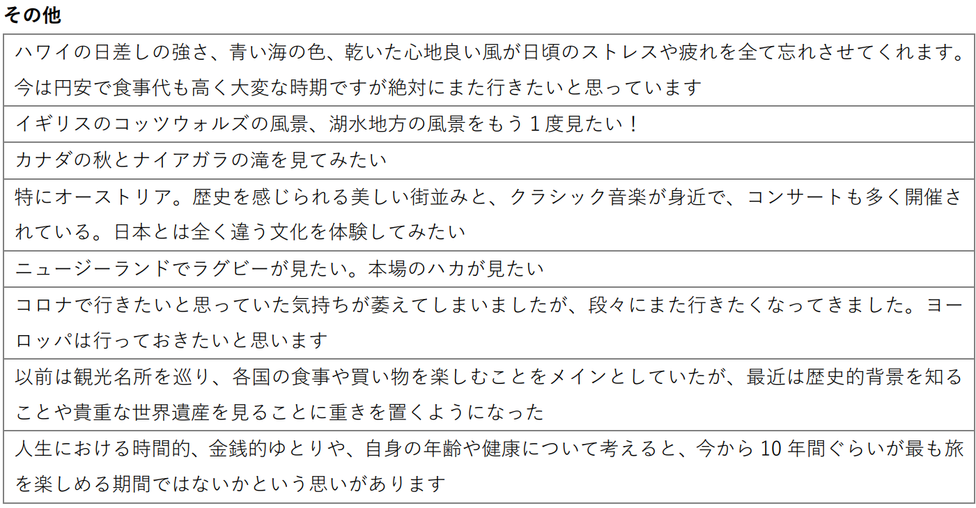■行っておきたい国・地域について思うこと(本調査の自由回答を抜粋)