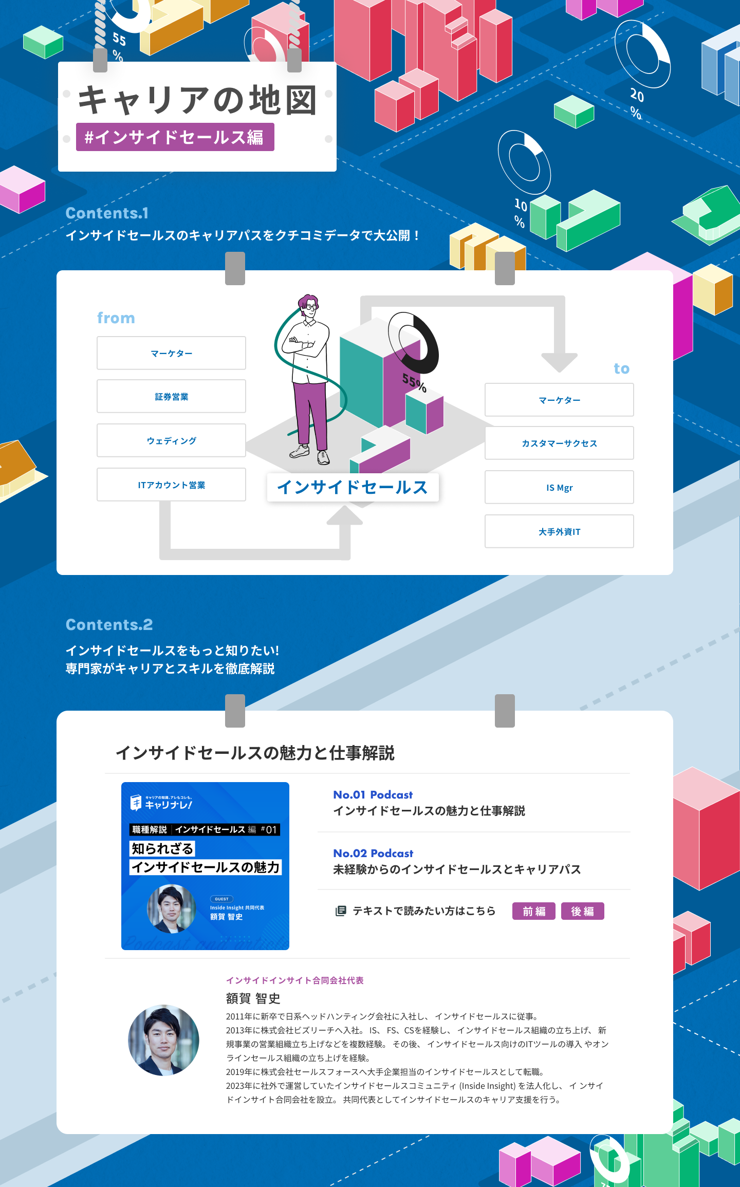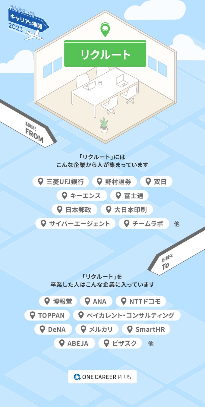 「キャリアの地図」は、企業や職種別のキャリアパスを、ONE CAREER PLUSに集まったクチコミデータをもとにオープンにしていく企画です。