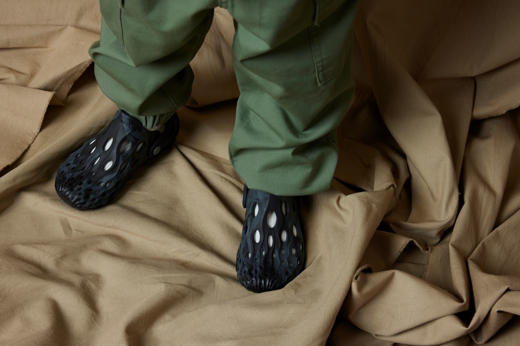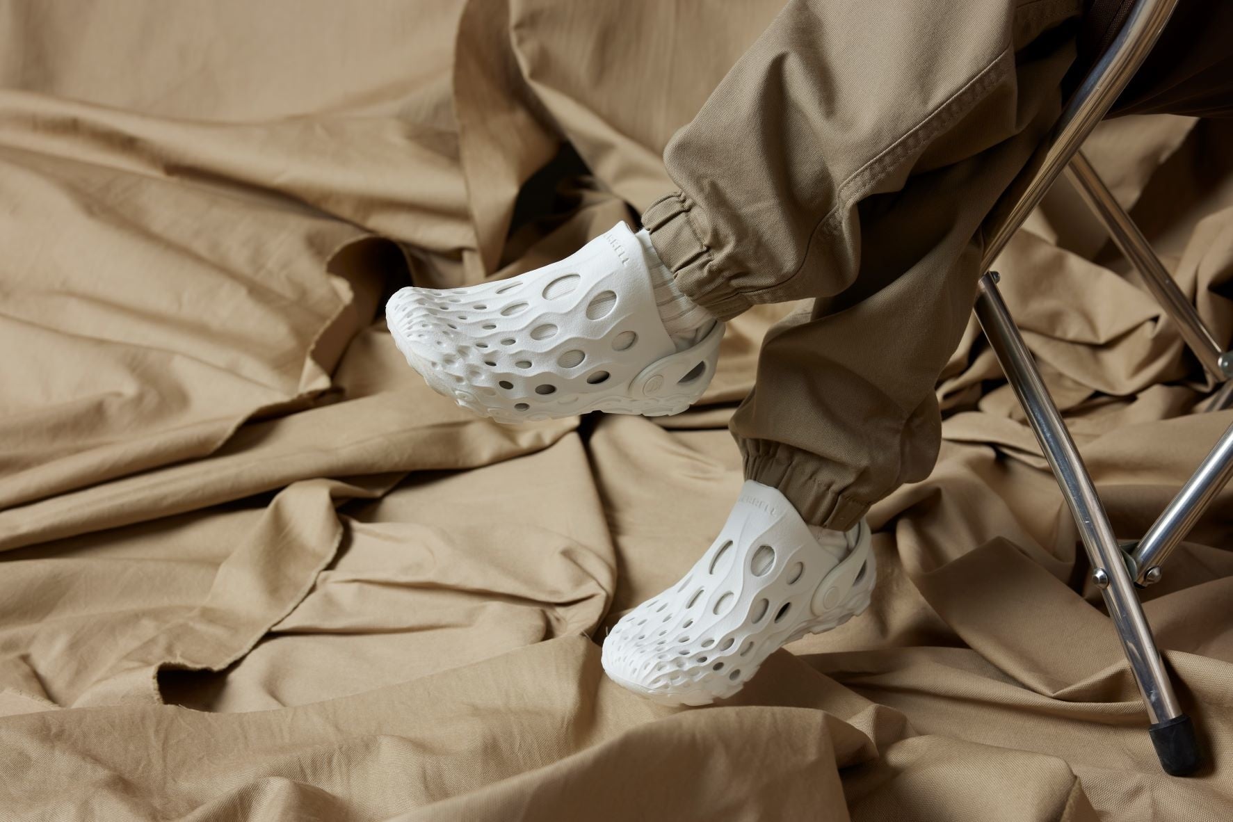 当シューズは1ピースのEVAフォーム素材で構造され、履いた時に少し“沈み”を感じる柔らかいクッション性と優れた安定性を発揮します。また、土踏まずのラインに沿って成形されたアーチサポートが足裏にピタッとフィットし、長時間履いていても疲れ難く、快適な歩行をサポートします。一般的なサンダルと比較し、足回り全体にスニーカーライクなフィット感を実現するため、アウトドアからタウンまでシームレスに活用可能で、このシューズ構造こそがアウトドアシューズを長年作り続けているMERRELLが培ったブランドの独自技術と言えます。
