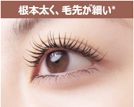 “塗り残しがち”な細かいまつ毛も100%根元からキャッチし根元はむちっと*1、毛先にかけて細くなる洗練シルエットへ。まつ毛1本1本をさらに際立てます。