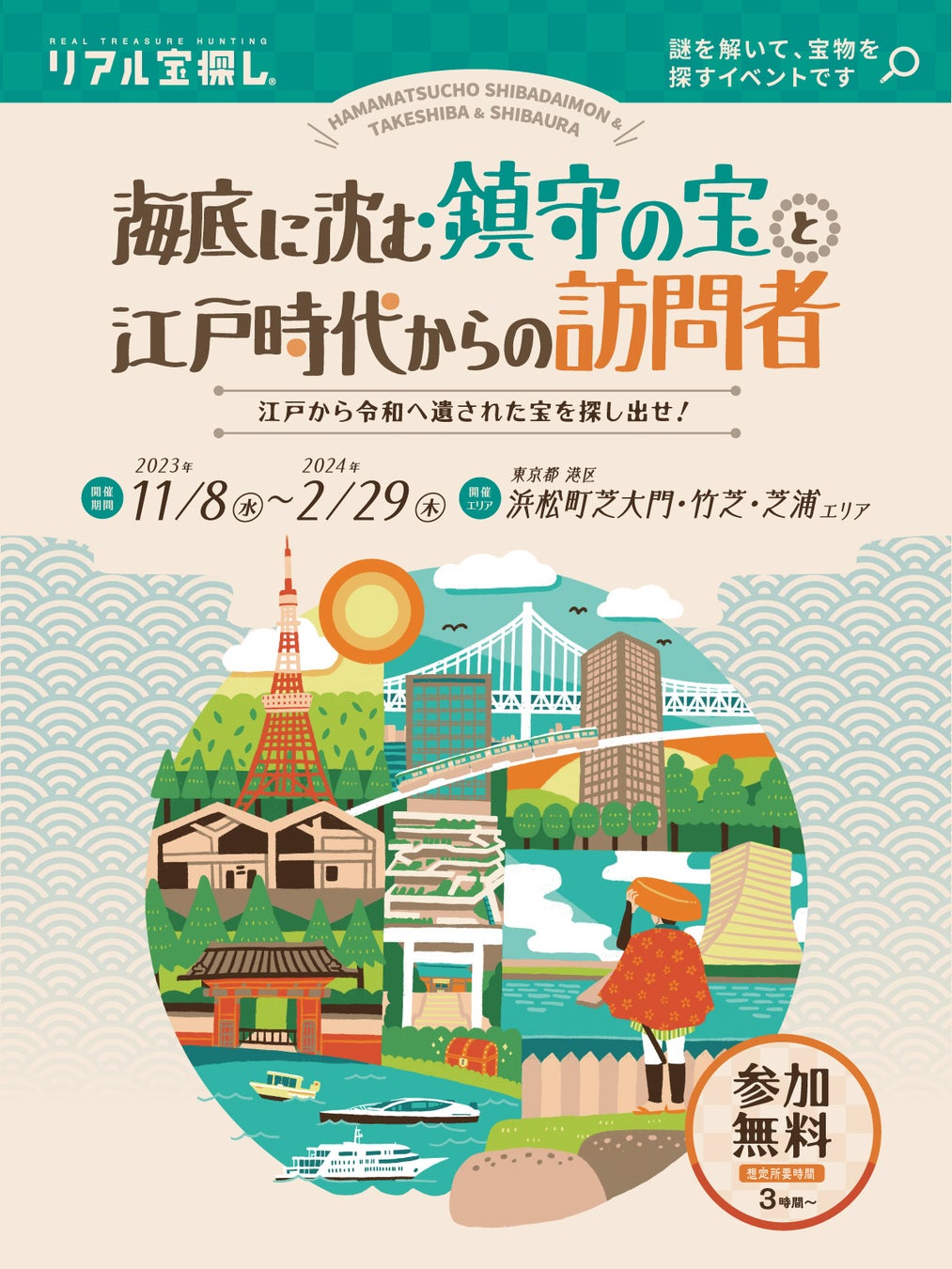 本イベントは浜松町芝大門・竹芝・芝浦エリアの回遊の活性化と賑わい創出を 目的として実施する宝探しイベントです。2022年11月から2023年の2月までに実施した「つなぐ未来と青緑色の秘宝」が参加者から高い満足度を獲得。また、地域に新たな経済効果を生み出すきっかけとなった事から、好評につきこの度イベント第2弾を実施する運びとなりました。