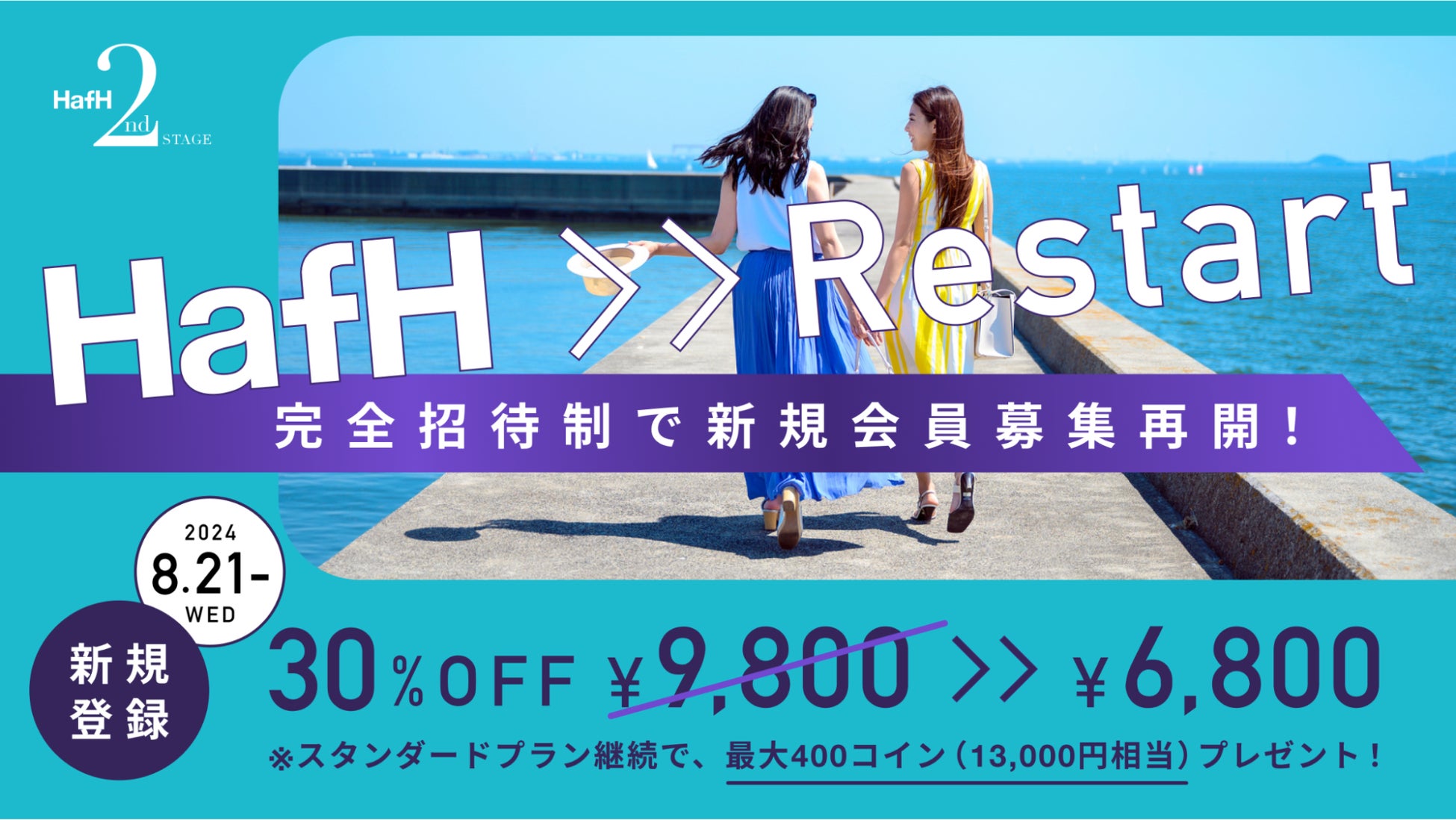 ・HafHの招待コードをお持ちの方に限り、HafHにご登録いただけます。