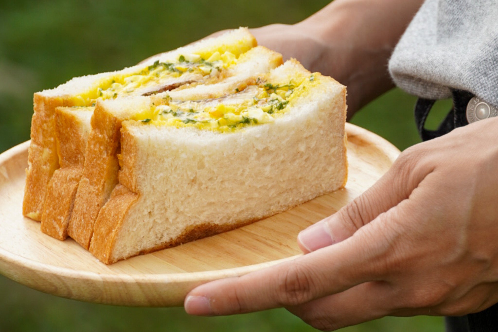 人気看板商品レモンブリオッシュや食パンの他、目黒産野菜とくず米を食べながら「森とパン」の裏庭で育った平飼い合鴨の有精卵を使用した「卵サンド」や、愛媛県宇和海産の初カツオと松野町農家の松比良さんが育てたまっちゃんトマトを使用した「カツオサンド」、松野町目黒に自生するよもぎをジェノベーゼソースに仕上げた「よもぎジェノベーゼチキンサンド」など、松野町で採れる旬の食材をふんだんに使用したサンドイッチメニューを提供しています。