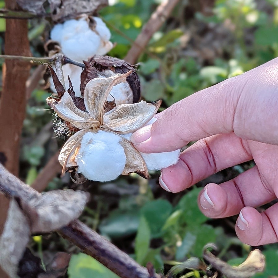 肥えた土壌、モンスーンによるほどよい雨、インド特有の照りつける太陽などによって、綿花が大きく育ちます。