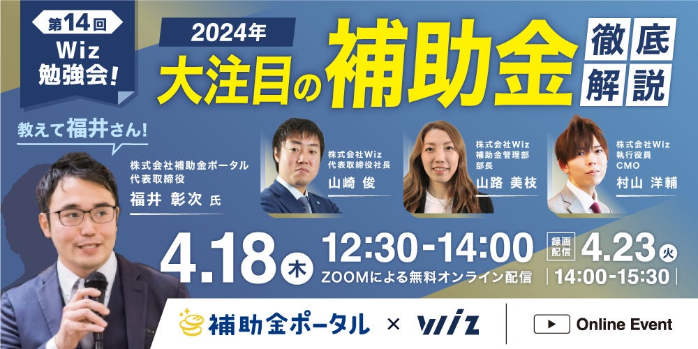 4/18(木) 教えて福井さん!【2024年大注目の補助金】について徹底解説!