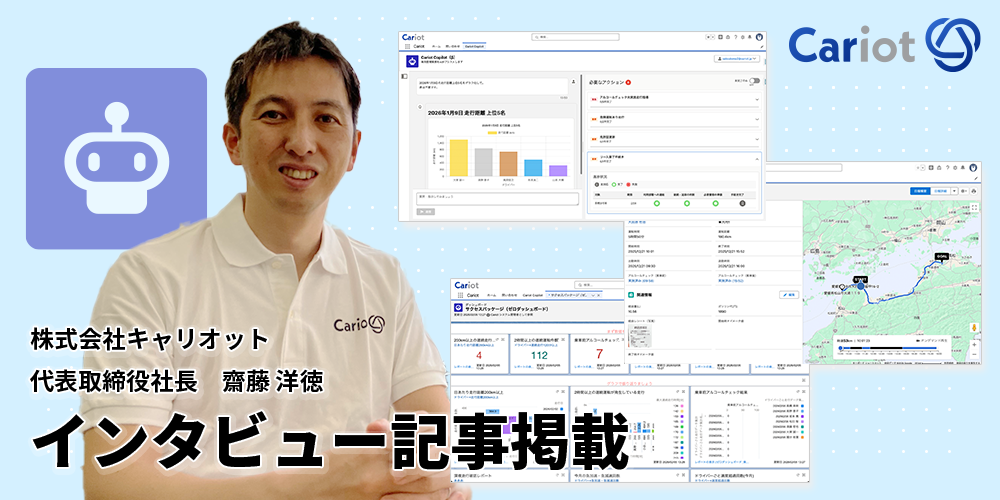株式会社キャリオット(本社:東京都港区、代表取締役社長 齋藤 洋徳)は、ASCII.jpに車両管理システム「Cariot」のインタビュー記事が掲載されたことをお知らせします。