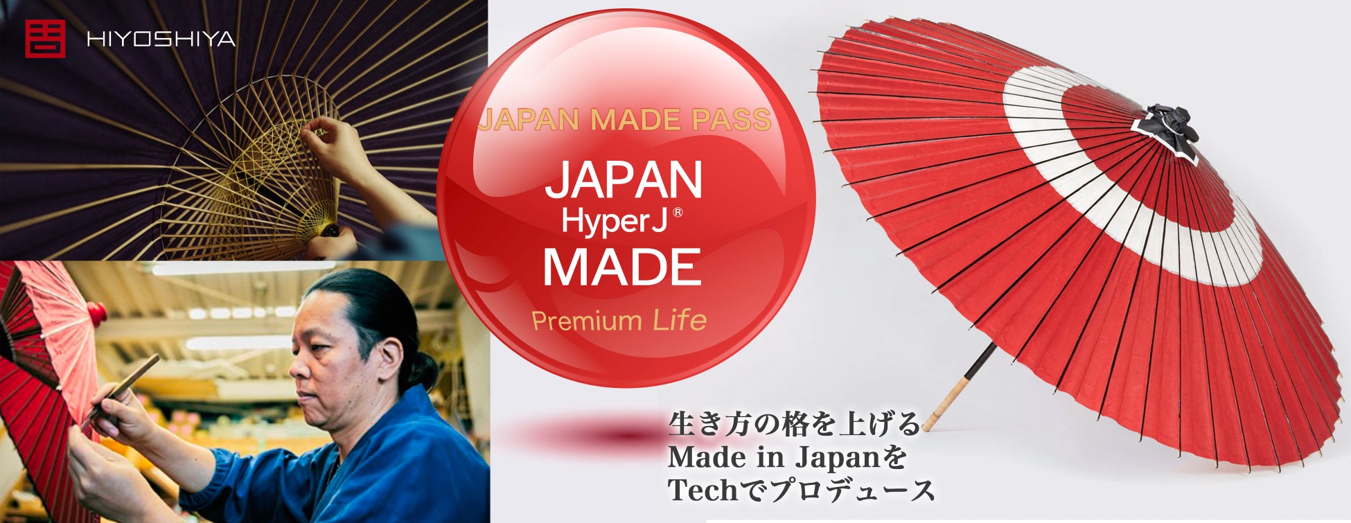 最高級の素材と技術を用いてシンプルで上品な京都独自の美意識を持つ「京和傘」を、JAPAN MADE ストアより購入された場合には、ブロックチェーン基盤の真贋判定システム「HyperJ.ai」により、日吉屋様のブランドであることを証明し、制作秘話などをホンモノストーリー動画で見ることができます。