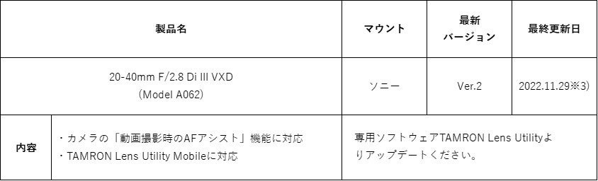 ※2) TAMRON Lens Utilityダウンロードページ: https://www.tamron.jp/support/lensutility.html