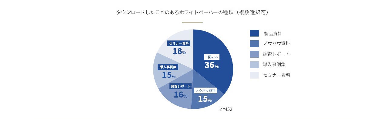 ノウハウ資料や調査レポート、セミナー資料などの直接的にはコンバージョンに結びつかない資料も一定数ダウンロードされており、製品やサービスの検討段階だけでなく、市場や業界のトレンド・知見を得るための情報収集段階でもホワイトペーパーが広く活用されていることがわかりました。