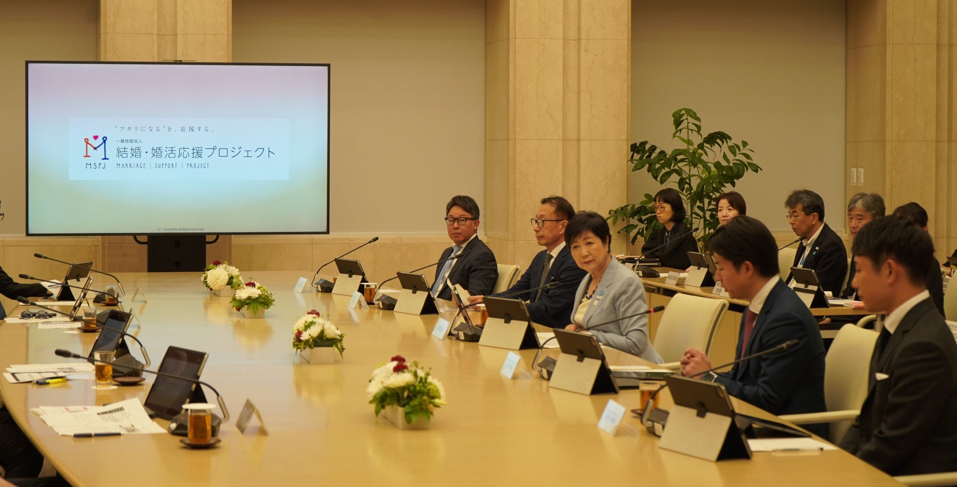 マッチングアプリ事業者団体「一般社団法人結婚・婚活応援プロジェクト(以下 MSPJ)」の代表理事で、恋活・婚活アプリ「タップル」を運営する株式会社タップルの飯塚勇太は、6月10日に東京都が開催した「結婚おうえん TOKYO ミーティング」に出席し、東京都の婚活支援について小池百合子都知事と意見を交わしました。