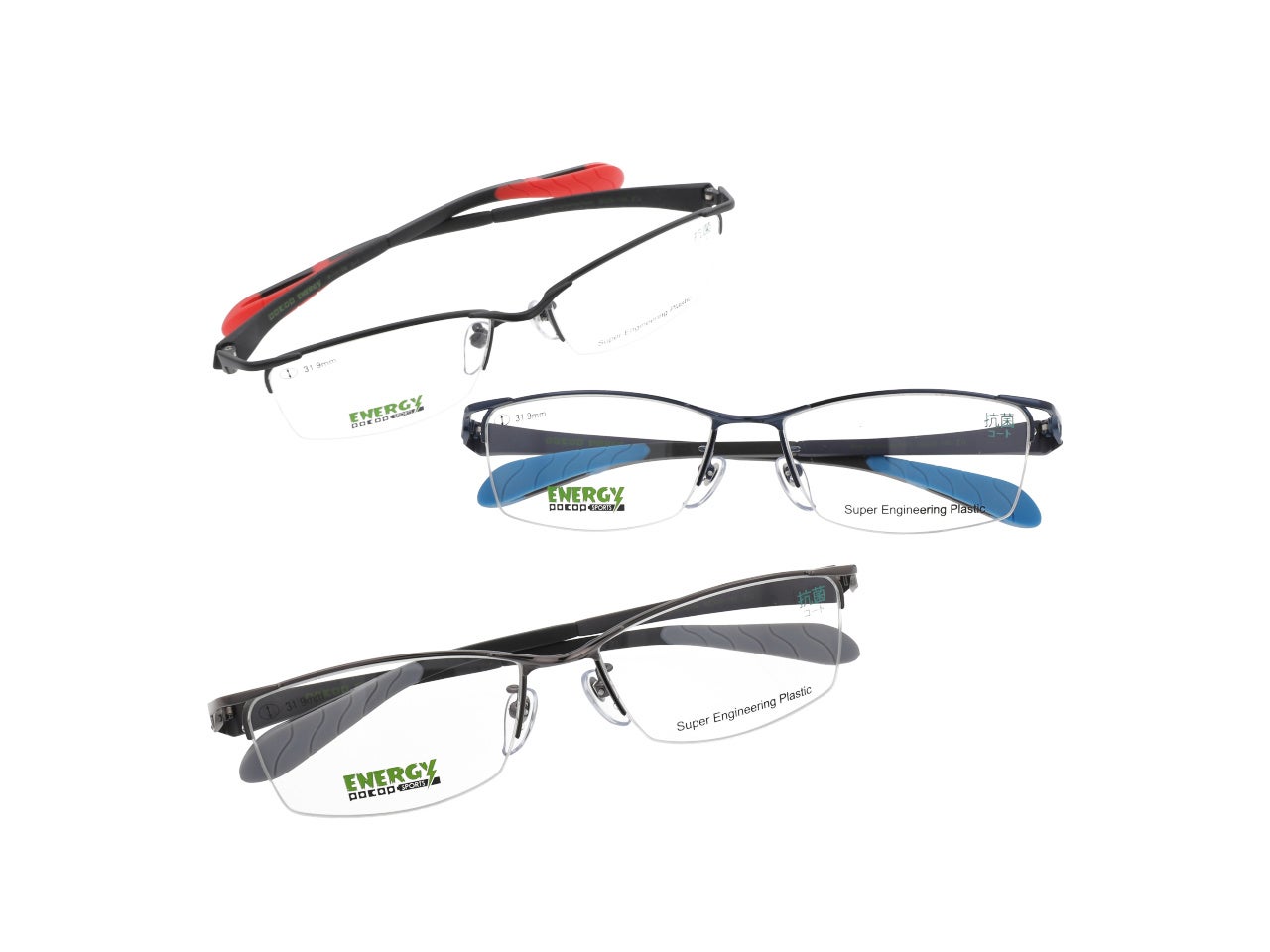 ビジネスシーンでも知的に映えるハーフリムタイプ。