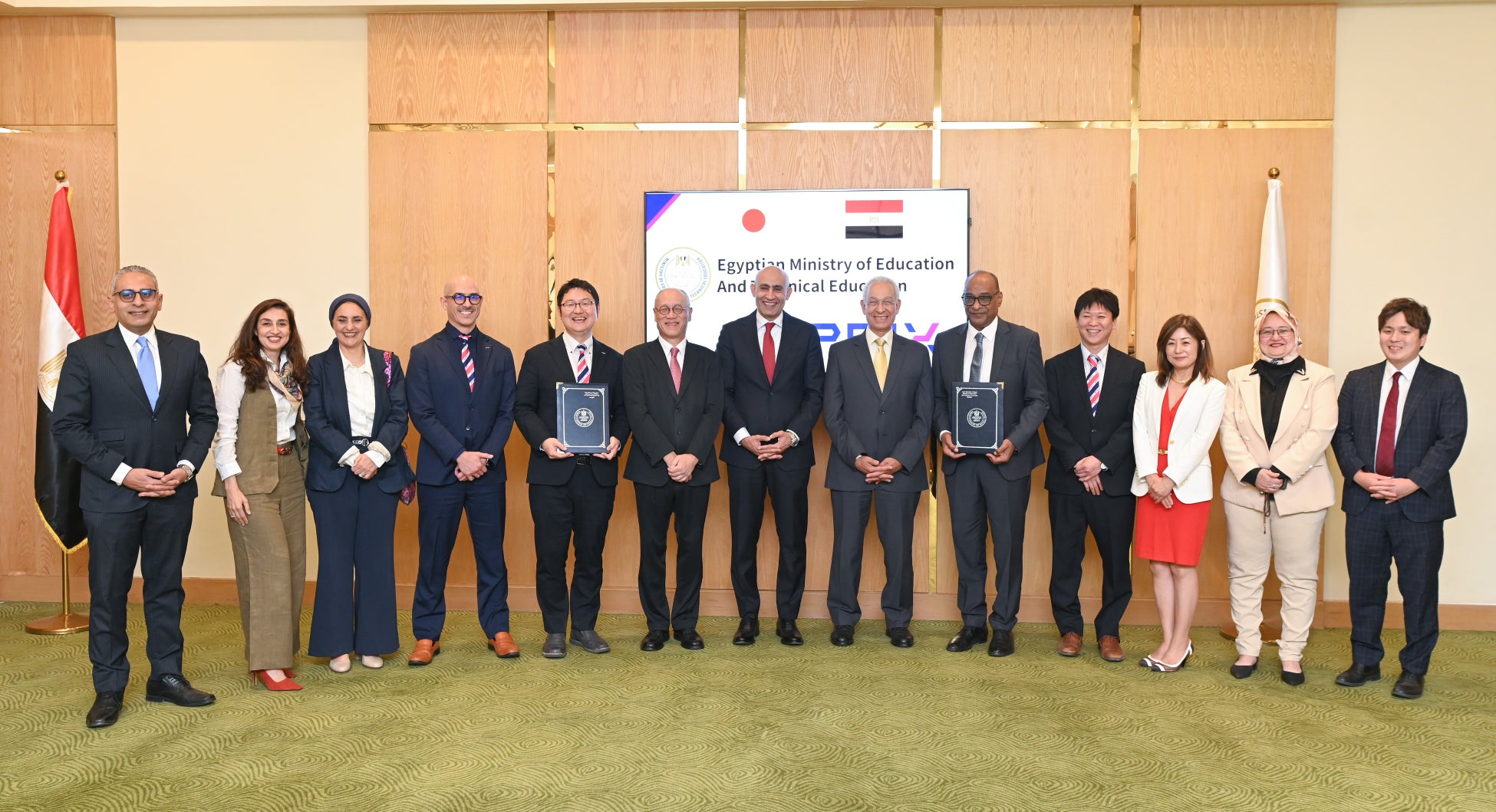 この締結式には、ムハンマド・アブデル・ラティーフ教育・技術教育大臣および岩井文男 在エジプト日本国特命全権大使を立会人としてお迎えし、両者は協力体制をより一層強化していくことをすることを確認しました。