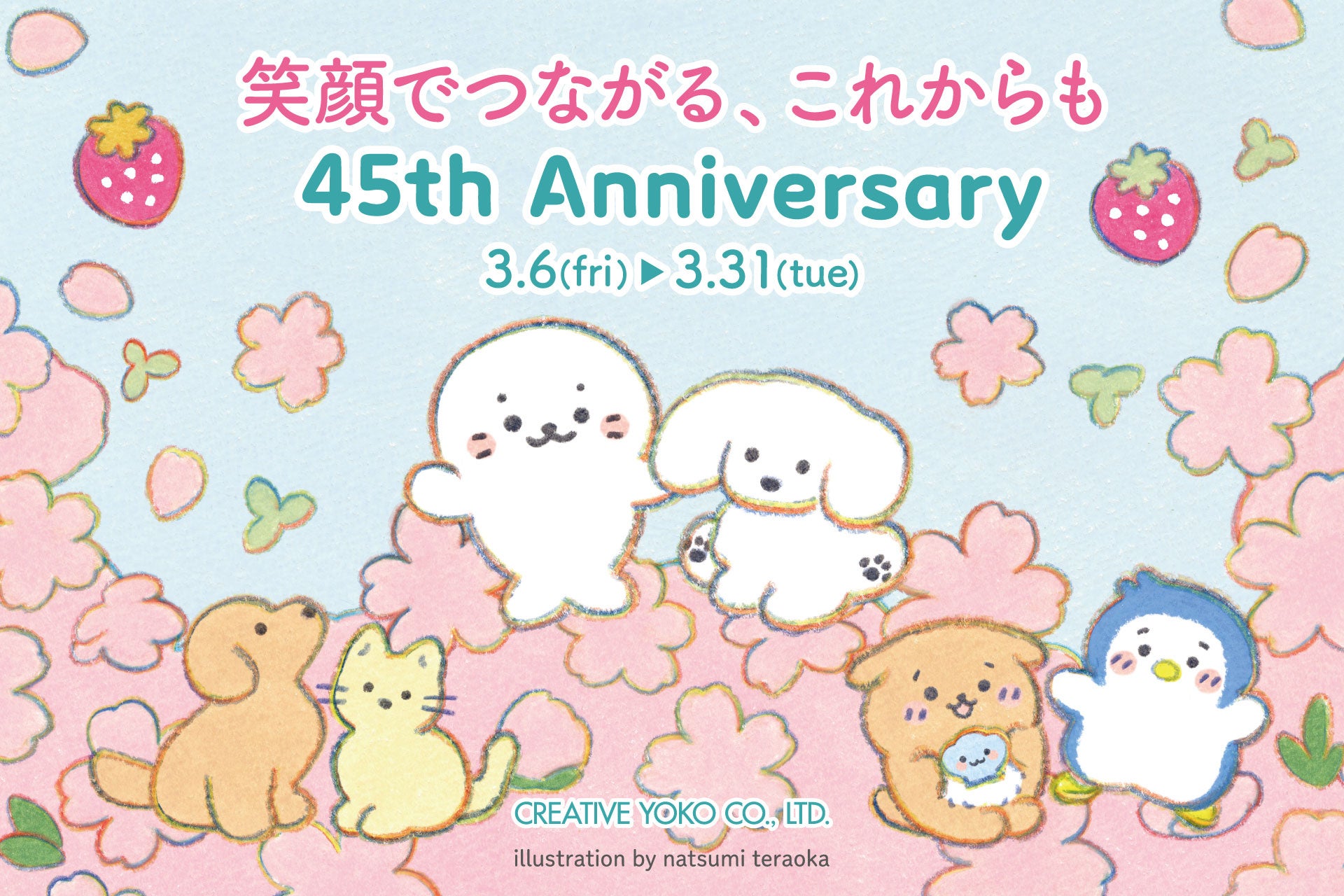 株式会社クリエイティブヨーコ(本社:長野県長野市 代表取締役社長:北原 武幸)は、2026年3月に創業45周年を迎えます。これまでのあゆみを支えてくださったすべての皆さまと、そのつながりに感謝の気持ちを込めて、“笑顔でつながる、これからも”をテーマに、3月6日(金)から全国の直営店舗、およびオンラインショップにて「創業45周年アニバーサリーフェア」を開催します。