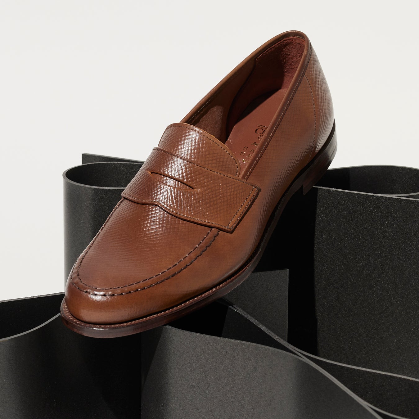 記念すべき100周年にふさわしいスペシャルオーダーが<クロケット & ジョーンズ>で実現しました。大変貴重なホーウィン社のウイスキーカラーのコードバンにハッチグレインの型押しをほどこしたローファー”HARVARD2”を12足限定で販売いたします。傷なども目立ちにくく、内側はアンライニングでやわらかい履き心地。レザーソールながら、屈曲性を追求したスーパーフレックスソールを採用し、ドレスシーンだけでなく、デニムと合わせてカジュアルシーンにもお使いいただける一足に仕上げています。