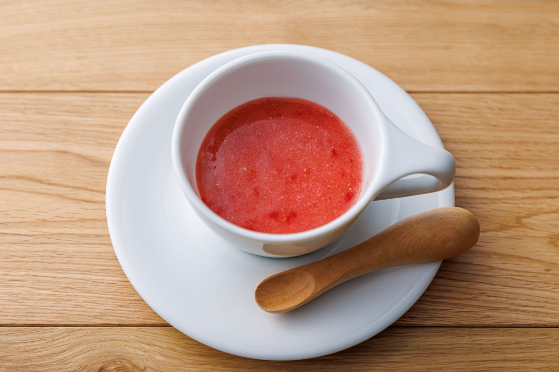 粗くすりおろし、少し果肉感を残してスープ仕立てにしました。